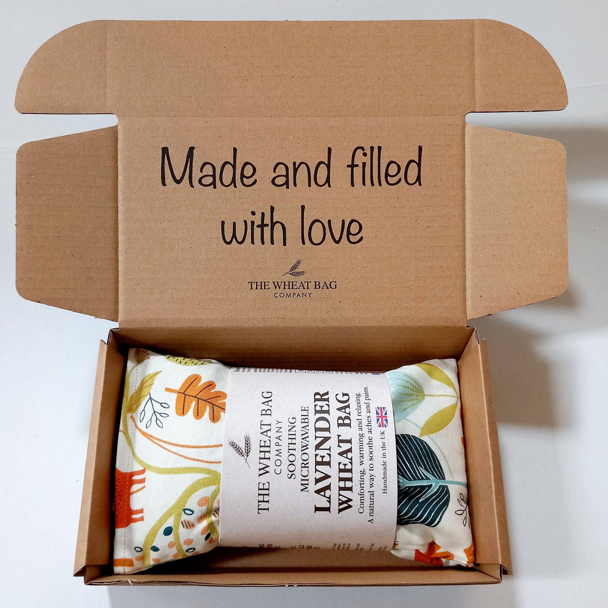 Our handmade cotton microwaveable wheat bags can be placed anywhere on the body for a natural way to soothe aches & pains. Comforting, warming and relaxing they make the perfect gift. Filled with cleaned English wheat, they are available in either unscented or with added English lavender buds. Please make your selection before adding to the basket. Free Gift box with every Wheat Bag mail order. Simply place the whole wheat bag in a clean microwave with a rotary turntable for 1 1/2 - 2 minutes at 500- 1000 watts. They can also be chilled in a freezer of the fridge for use on sprains. * Size: 47cm X 14cm approx * Complies with British Safety Standards - BS8433:2004 * Material 100% Cotton * Made in Wiltshire, England * Suitable for all ages over 36 months * Can be wiped clean